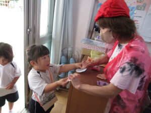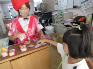 台風が接近していたので、縁日ごっこができるか心配していましたが、台風の影響なく、予定通り縁日ごっこが行われました。
