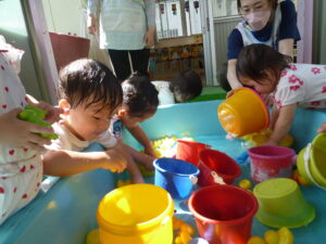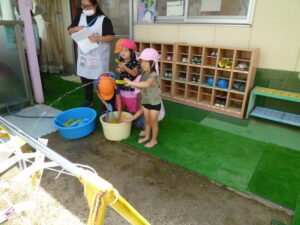 乳児クラスは水あそびコーナーを存分に楽しみました💦水あそびコーナーに行くと、目をキラキラさせながら水に触れたり、ホースシャワーを浴びたり、とっても気持ちよさそうに遊んでいましたよ☺この夏ならではの体験ができて大喜びの子どもたちでした♬